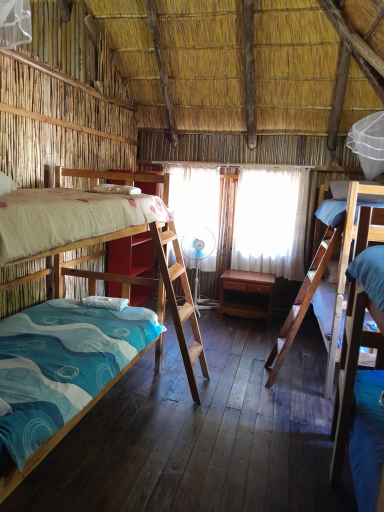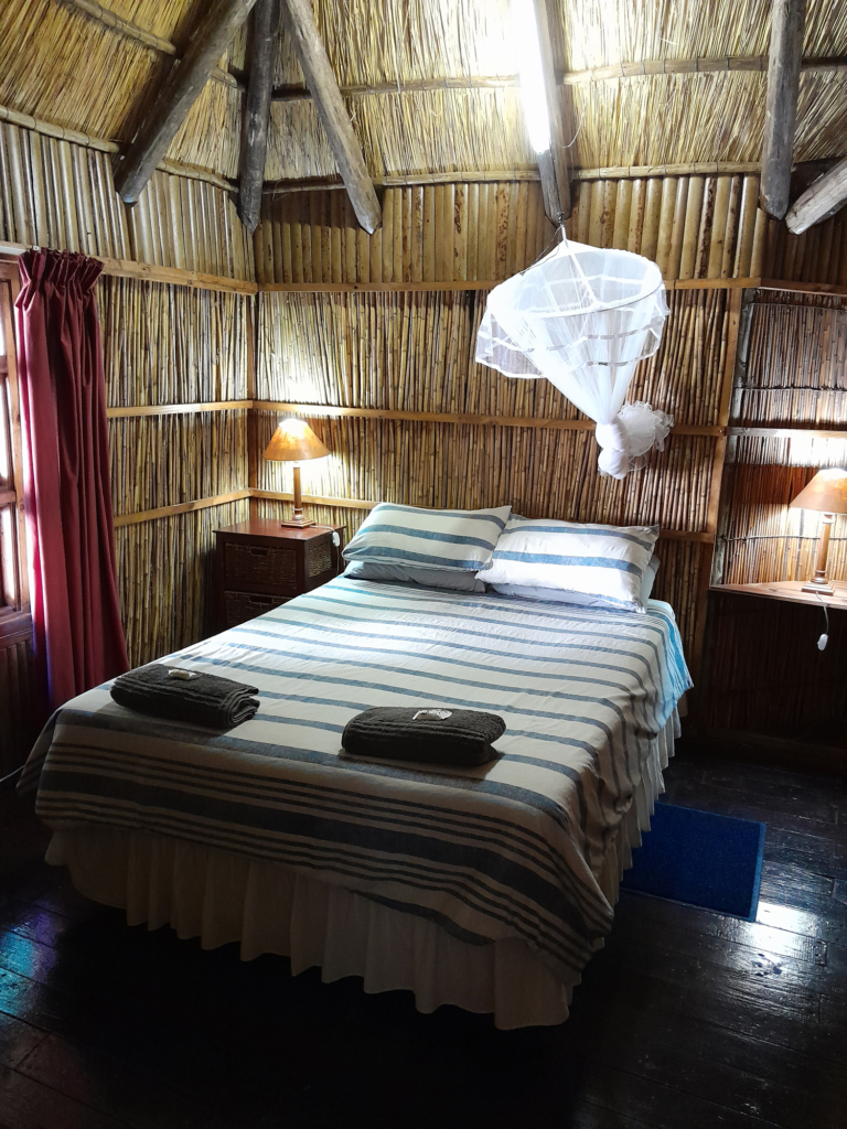 Pemba is a rustic, three-bedroom wooden casita close to our restaurant. It has two double rooms and a dorm room which can sleep six people in bunk beds. The main bedroom has a en-suite bathroom. It also has a fully-equipped kitchen, a lounge, a bathroom with a shower and toilet and an outdoor braai area for social braais.
