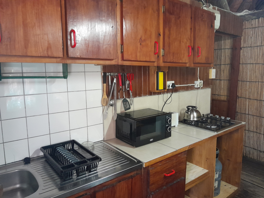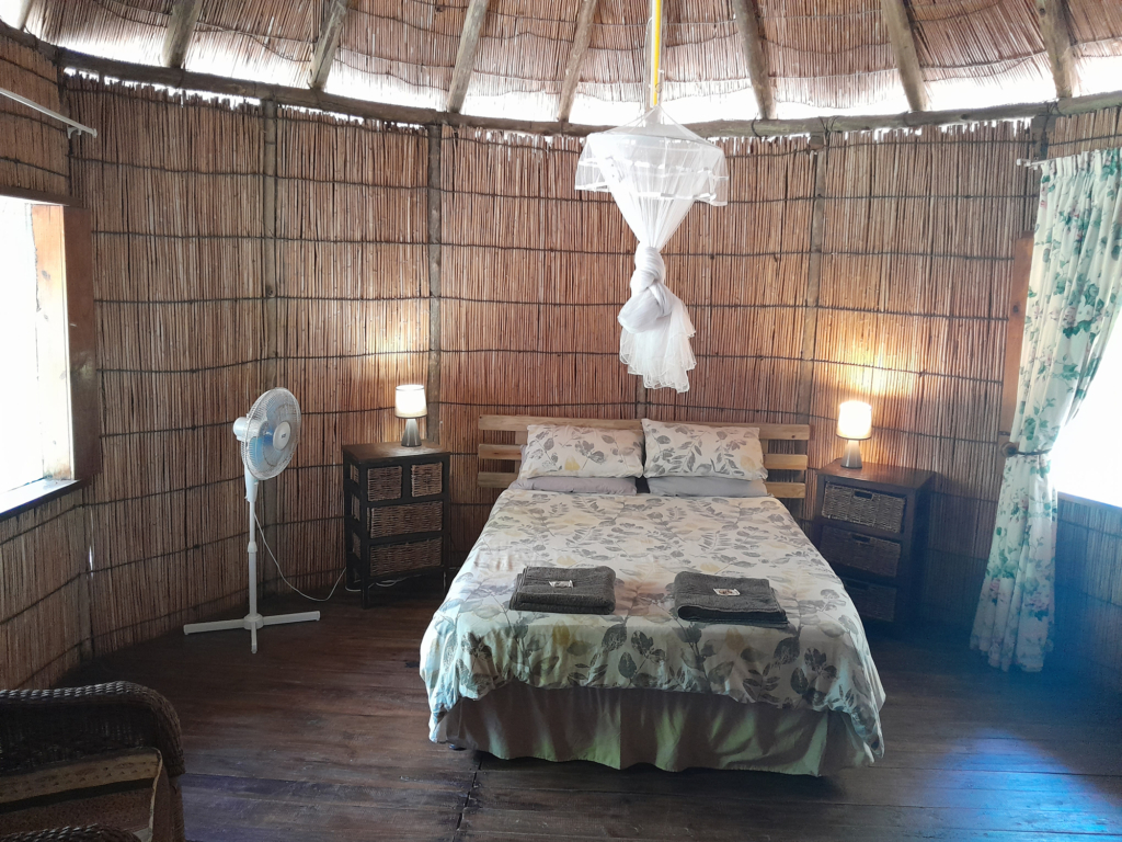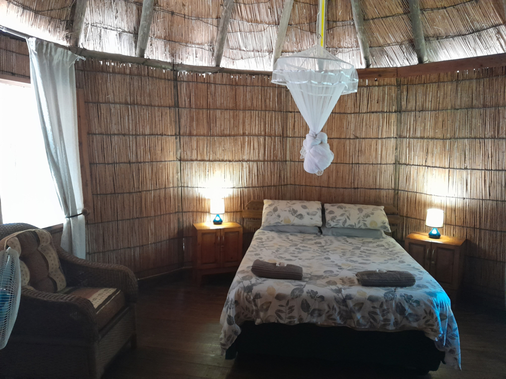 A three-bedroom reed-and-thatch house that sleeps 6-8 people. The kitchen is fully equipped and Beira has its own private outdoor boma for braais and socialising. The bathroom has a shower and toilet.